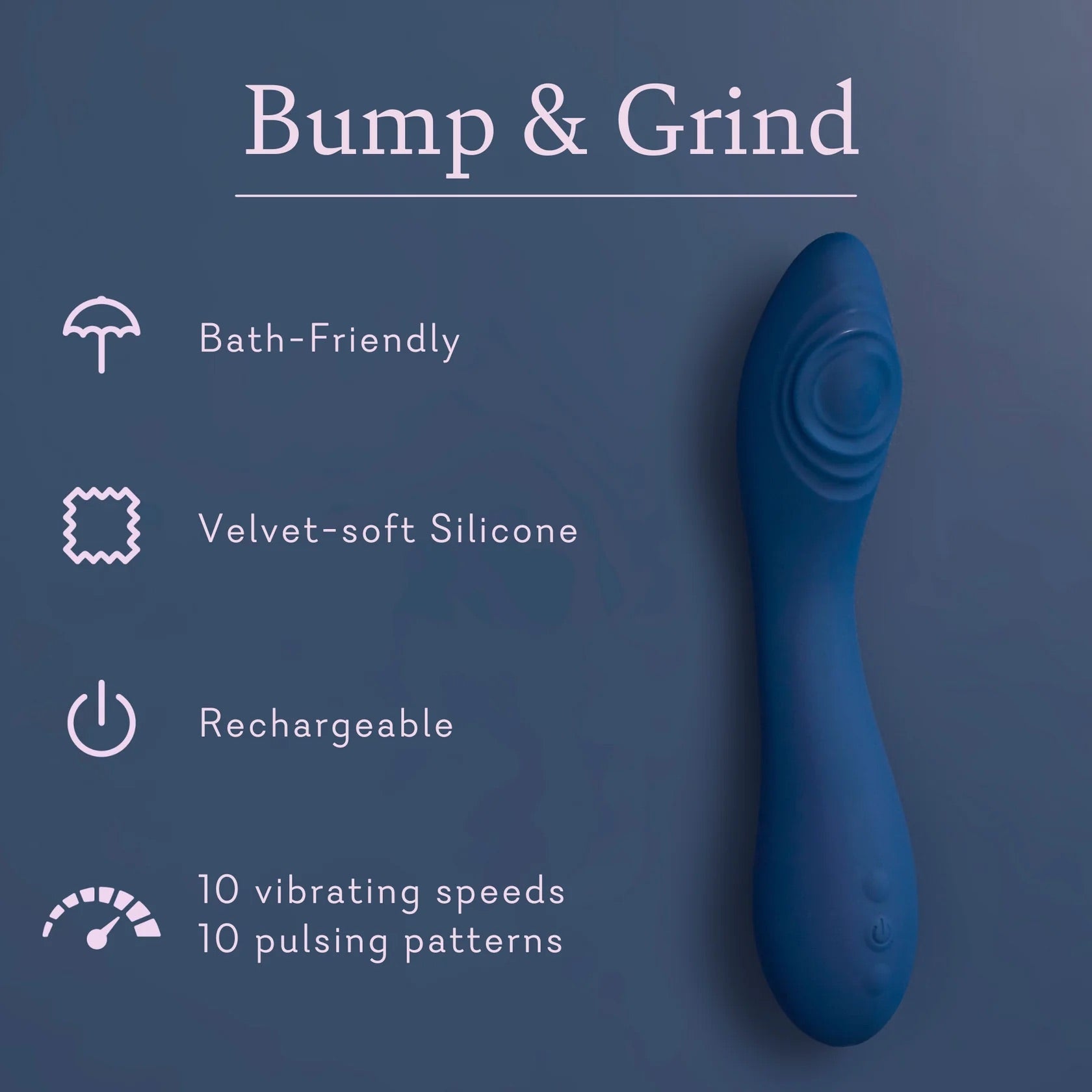 Feel the rhythm with Bump & Grind, a silicone vaginal vibrator with a thrilling thumping shaft. This silky toy has 10 shaft functions and 3 speeds from two independently controlled motors. Vibrations and deeper thumps massage vaginal walls and will hit all the right moves.